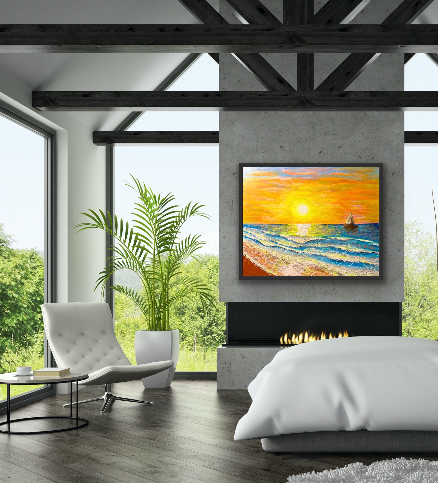 This 16x20 exclusive acrylic painting was hand painted on a canvas board while sunbathing on the Carolina coast. It was created using elements straight from the beautiful Atlantic ocean. The vibrant paint on this canvas was mixed with sand and sea. Bring the beach home to your beautiful space.